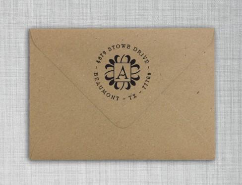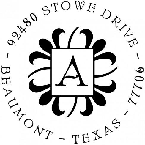 Make your personalized return address stamp as personalized as possible! The Abby Design is based the classic design style, Arts & Crafts, with your initial proudly displayed front and center. The design features a beautiful combination of curved shapes matched with dominating straight lines, creating a wonderful dichotomy.